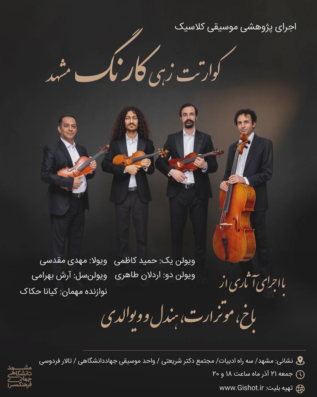 اجرای پژوهشی موسیقی کلاسیک کوارتت زهی کارنگ مشهد